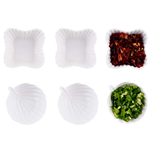 • AHUA 3 oz Porcelain Ramekins,Dessert Bowls,Ice Cream Bowls,Snack Bowls,Dipping Bowls,Soy Sauce Dishes,Appetizer Dishes,Leaf Shaped & Spiral Pattern Set of 6