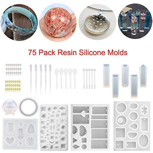 • 75 Pack Resin Silicone Molds Jewelry Casting Molds Resin Jewelry Molds for DIY Jewelry Craft Making, Assorted Styles Different Shape Durable Tool Set for Paperweight, Home Decoration
