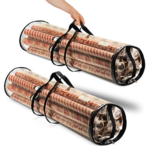 • Christmas Wrapping Paper Storage Bag - Fits 14 to 20 Standard Rolls Upto 40"- Slim Design Underbed Wrapping Paper Storage Container or Closet Storage Gift Wrap Organizer, Water Proof PVC Fabric, Clear