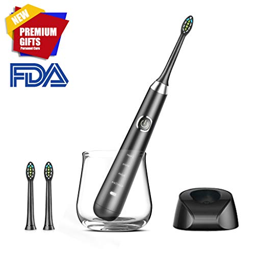 • Premium Sonic Electric Toothbrush, 4 Intelligent Modes with Superior Sonic Technology, Multi-Layer Nano Material, IP67 Waterproof & 2 PDA Certified Heads (Black)