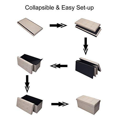 • WoneNice Linen Folding Storage Ottoman Bench, Storage Chest Footrest Padded Seat, 30 x 15 x 15 in, Beige