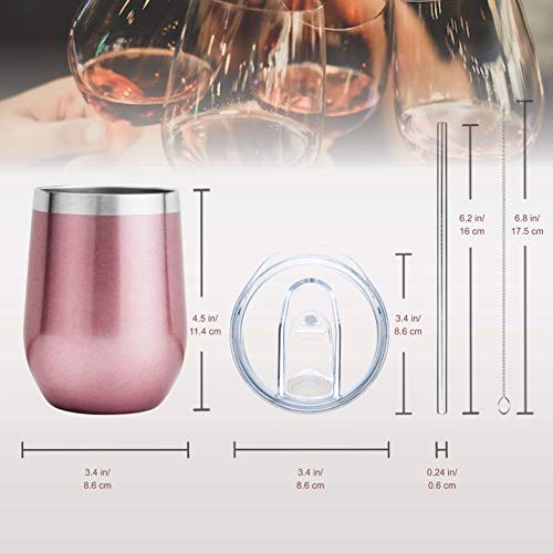 • Carpe 12 oz Stemless Insulated Wine Glass Tumbler with Sliding Lid and Straw, Spill Proof Stainless Steel Double-Wall Wine Tumbler Cups for Champaign, Cocktail, Coffee, Drinks, Set of 2 (Rose Gold)