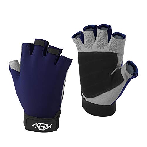 • Palmyth UV Fishing Gloves Sun Protection Fingerless Kayaking Glove Men Women UPF 50+ SPF for Sailing, Hiking, Paddling, Canoeing, Rowing, Driving (Navy Blue, Medium)