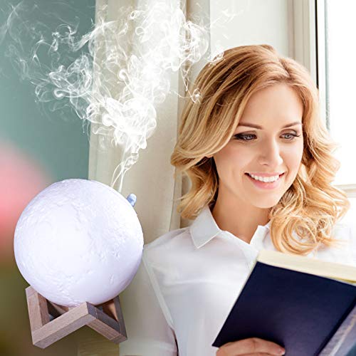 • Bluefeel USB Humidifier 3D Printing Moon Lamp USB LED Night Light Humidifier with Touch Sensor Switch, 3 Colors Night Light, Wood Holder for Living Room, Bedroom, Office