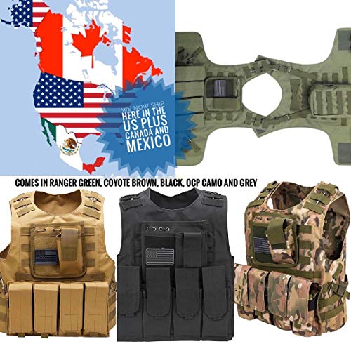 • Redemption Tactical Airsoft Vest for Adults and Kids w/US Flag Patch and Pouches (brown, small-large)