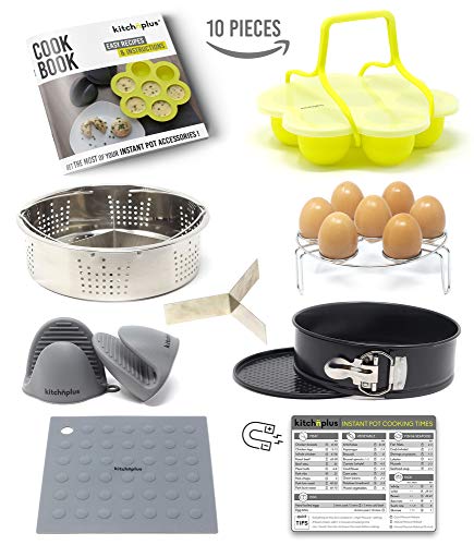 Instant Pot Accessories Set 10 pieces | by Kitchnplus | Fits Pressure Cooker 6 to 8 Qt - Egg Bites Mold, Springform Pan, Steamer Basket, Egg Rack, Oven Mitts/Mat, Cheat Sheet Magnet, Recipes Booklet