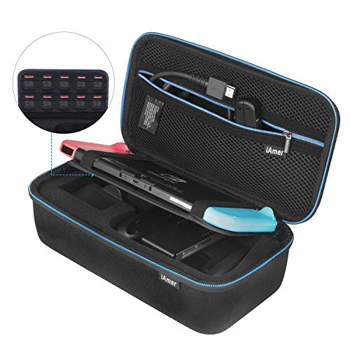 iAmer Case for Nintendo Switch, [Upgrade] Protective Travel Case for Nintendo Switch Console/ AC Charger(UK or EU)/ Joy-Con L&R/ Grip/Joy Con Strap and HDMI Cables with 10 Game Cartridges