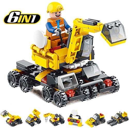 • Building Blocks for Kids, Easter Eggs Filled with Toy Construction Vehicles Brick Toys Car Set for Kids Dump Truck, Excavator, Forklift, Bulldozer, Drilling Vehicle Surprise Easter Gift for Boy, Girl