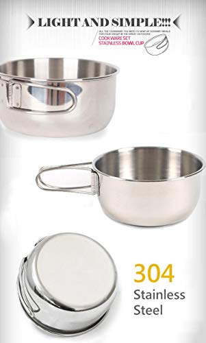 • A Yue Stainless Steel Bowl Set of 4 with Mesh Bag, Portable for Outdoor Camping Hiking Picnic BBQ (700ml)