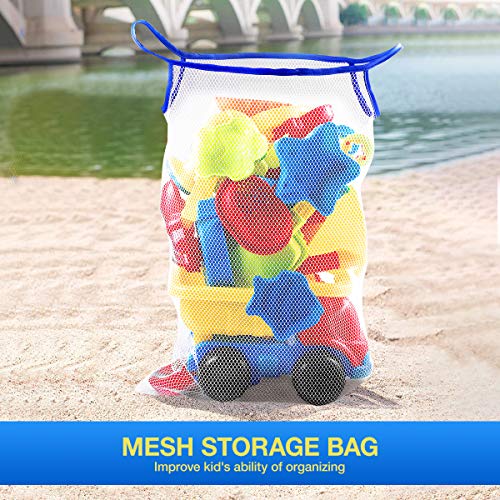 iBaseToy 26Pcs Beach Sand Toys with Mesh Bag - Beach Shovel Sand Rake Tool Kit, Beach Mold, Sand Water Wheel, Dump Truck, Watering Can - Outdoor Sandbox Toys Set for Kids Toddlers