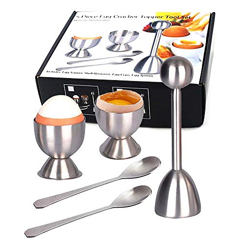 • Egg Topper Set Egg Cutter Topper Set Egg Cracker for Hard & Soft Boiled Eggs Eggs Separator Tool Shell Remover & Cutter - Steel Spoon & Cup Holder (5)