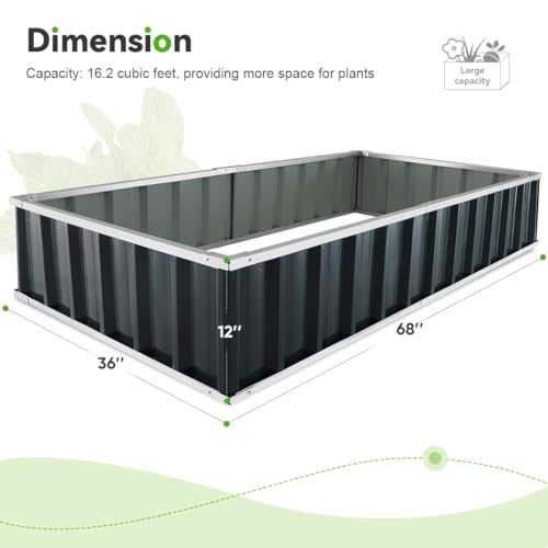 • KING BIRD Raised Garden Bed 68" x 36" x 12" (2 Packs) Galvanized Steel Metal Outdoor Planter Kit Box for Vegetables, Flowers, Fruits, and Herbs, Dark Grey