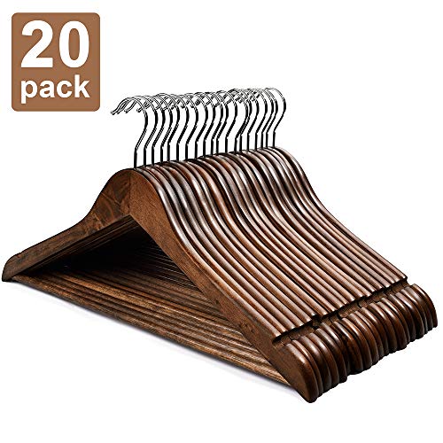 • HOUSE DAY Wooden Hangers 20 Pack Wooden Clothes Hanger Wooden Coat Hanger Bulk Walnut Smooth Finish Premium Wooden Hanger for Clothes Dress Suit