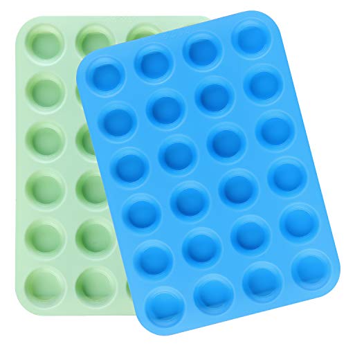 • Senbowe Silicone Muffin and Cupcake Pans - Set of 2 | Cake Molds |Baking Pan Set | Large (12) and Mini (24) | Easy to Clean Non Stick Bakeware | BPA Free and Dishwasher Safe