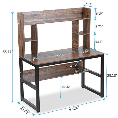• Tribesigns Computer Desk with Hutch, 47 Inches Modern Writing Desk with Storage Shelves, Office Desk Study Table Gaming Desk Workstation for Home Office, Vintage + Black Legs