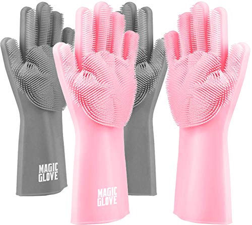 Magic Glove Magic Dishwashing Silicone Cleaning Gloves – 2 Pack Dish Scrubber Kitchen Gloves Dish Washing Gloves, Scrubbing Gloves for Dishes, Pink Gray