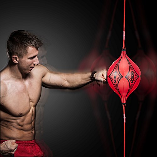 • KUYOU Double End Ball with Pump Boxing Ball Speed Training Ball Leather Speed Bag Punching Dodge MMA with Ring Locking for Training Gym Exercise Agility (Red)