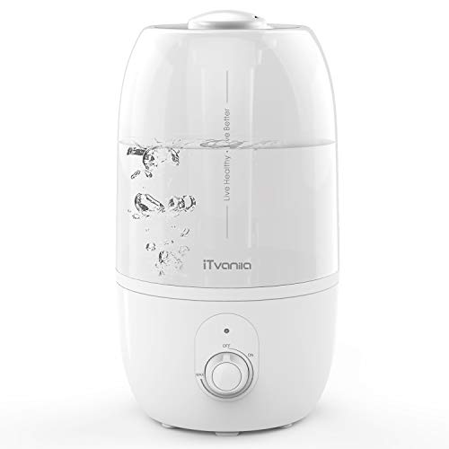 • iTvanila Ultrasonic Humidifier, Cool Mist Humidifiers for Bedroom Baby Kids,Personal Room Humidifiers with Whisper-Quiet Operation, Auto Shut-Off, 14-28 Hours Working Time(Milky)