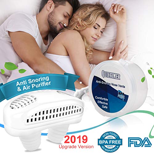 QUIETIMER 2-in-1 Anti Snoring Devices, Snoring Solution Nasal Dilator Air Purifier Filter Nose Vents Plugs Clip Stop Snoring Aids Snore Stopper Reduce Snoring Sleeping Aid Device for Ease Breathing (White)