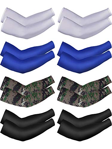 Mudder 8 Pairs Unisex UV Protection Arm Cooling Sleeves Ice Silk Arm Cover(Black Blue Grey Camouflage), womens