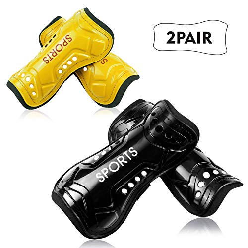 • Youth Soccer Shin Guards, 2 Pair Lightweight and Breathable Child Calf Protective Gear Soccer Equipment for 3-10 Years Old Boys Girls Children Teenagers (Yellow)