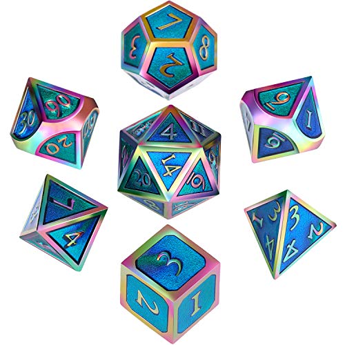 • Hestya 7 Pieces Metal Dices Set DND Game Polyhedral Solid Metal D&D Dice Set with Storage Bag and Zinc Alloy with Enamel for Role Playing Game Dungeons and Dragons (Electrophoretic Colorful Cerulean)