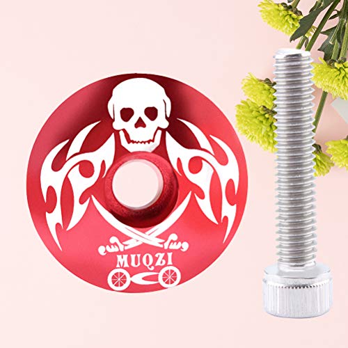 • LIOOBO 28.6mm Bike Headset Top Cap Pirate Pattern Aluminum Alloy Bicycle Stem Cap Screw for Mcountain Highway Biycle (Red)