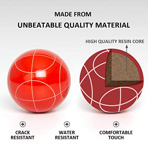 • ropoda 90mm Bocce Ball Set with 8 Polyresin Balls, Pallino, Case and Measuring Rope for Backyard/Lawn/Beach/Outdoor, Resin Bocce Ball for Kids Teens Beginners(2 to 8 Players)
