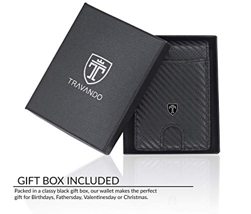 • TRAVANDO Money Clip Wallet Atlanta Mens Front Pocket Slim RFID Blocking - Credit Card Holder - Mini Bifold (Carbon Leather, Carbon)