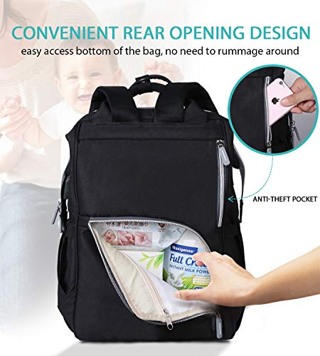 SCIONE Large Diaper Bag Baby Backpack for mom with USB Charging Port Waterproof Multifunctional Travel Back Pack Maternity Baby Nappy Changing Bags, Large Capacity and Stylish, Black