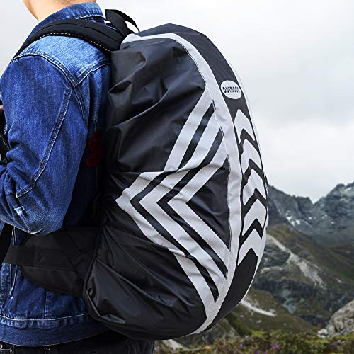 • Idefair Backpack Rain Cover Waterproof Reflective Strip Design with Anti Slip Buckle Strap and Rainproof Storage Pouch for Camping, Hiking, Traveling, Outdoor Activities (Black, S)