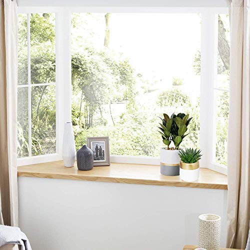 • TIMEYARD Ceramic Planter Pots Indoor with Drainage Hole, Set of 2 Small Flower Pots Cylinder Containers with Gold and Grey Painting Modern Home Garden Décor
