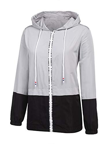 ZEGOLO Women's Raincoats Waterproof Packable Windbreaker Lightweight Active Outdoor Hooded Rain Jacket S-XXL, womens, Bblack and Grey