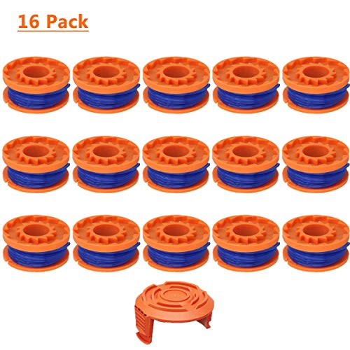 wonuu 15 Pack Trimmer Line Replacement for Worx, 0.065 Grass Trimmer Edger String Spool Line & Spool GT Cap Cover Compatible Worx WA0010 50006531 fit for WG163 WG155 WG165 WG160 WG180, 15 Pack Trimmer Spool Line+1 Pack Cover