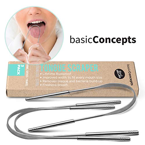 • Tongue Scraper (3 Pack), Cure Bad Breath (Medical Grade), Stainless Steel Tongue Cleaners, 100% BPA Free Metal Tongue Scrapers for Fresher Breath in Seconds