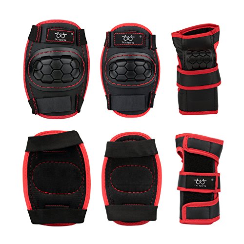 • Boruizhen Child Kids 3 in 1 Skateboard Protective Gear Set Knee Pads Elbow Pads Wrist Guards for Cycling,Skating,Scooter,Inline Rollerblading,BMX,Rock Climbing Sports (Black/Red, Medium)