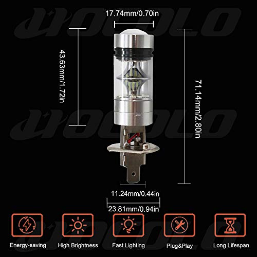 • HOCOLO H1 100W Samsung Chip LED Fog Light Lamp Bulbs for DRL Fog Driving Lights 8000K Ice Blue High Power LED Bulbs Car Vehicle Lighting Accessories (Set of 2) (H1 -Ice Blue 100W -Fog / DRL)