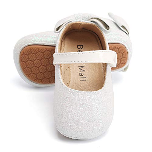 Felix & Flora Soft Sole Leather White Baby Shoes - Infant Baby Walking Shoes Moccasinss Rubber Sole Crib Shoes(White,18-24 Months), Giltter White, 18-24 Months Wide Infant