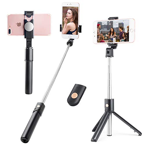 • WIYFA Selfie Stick Tripod Stand Holder Extendable with Bluetooth Remote 360°Rotatable Phone Holder with Back View Mirror-Black 02