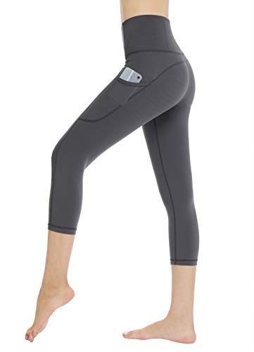 • Dragon Fit High Waist Yoga Leggings with 3 Pockets,Tummy Control Workout Running 4 Way Stretch Yoga Pants (Small, Dark Grey)