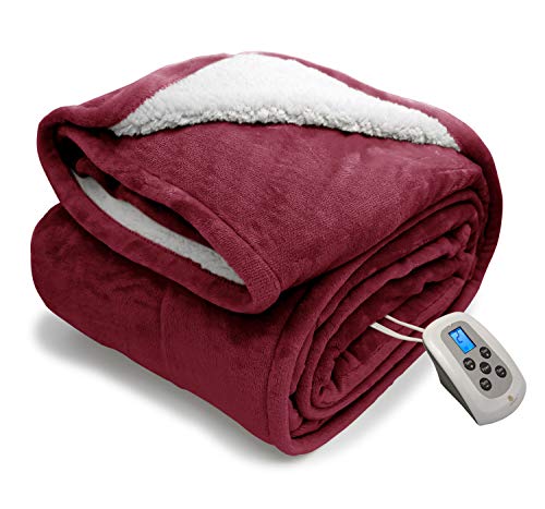 • MARQUESS Twin Heated Blanket Electric Sherpa and Reversible Flannel Washable Throw,Fast-Heating Full Body Warming Soft with 10 Heat Settings/Safety 10 Hours Auto-Off Controller (62x84''Burgundy) ...