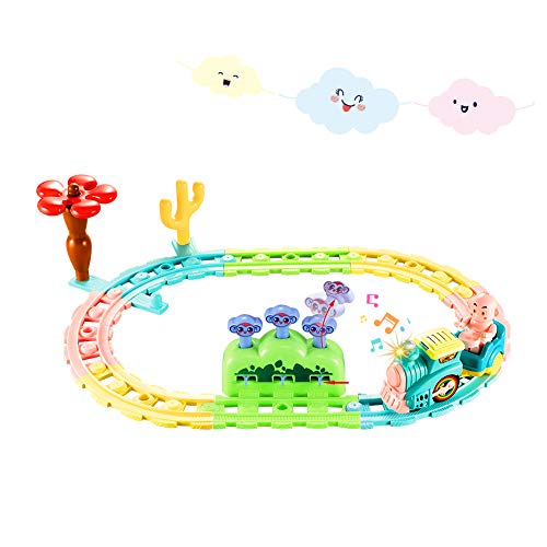 • YGJT Train Set Toys Battery Operated Train Railway Track Toy for Baby Kids, Electric Toy Trains with Lights and Sounds Monkey Pop-Up Play for 1 2 3 4 Old Toddler Boys Girls Gifts
