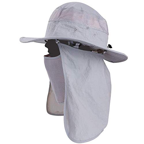 • Fishing Bucket Hat for Men,Waterproof Wide Brim Boonie Sun Hat UV Protection with Removable Face Mask & Neck Flap (2pack-Light Gray & Dark Gray)
