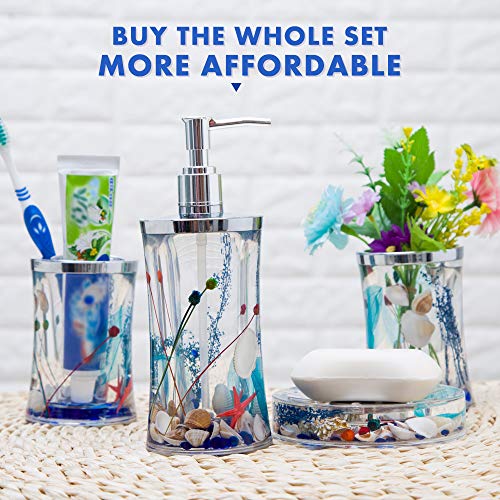 ADUTY Bathroom Accessory Acrylic Ocean Series Bathroom Organizer Hand Lotion and Soap Dispenser Bottle with Floating Blue Glass and Sea Shell ZDAD001, Blue Seashell Soap Dispenser