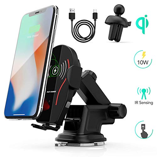 • Wireless Car Charger Auto Clamping, AGPTEK Car Phone Mount for Car Wireless Charger Infrared Sensor Compatible with iPhone Xs Max XR XS X 8 Plus Samsung Galaxy S9 S8 S7 and More