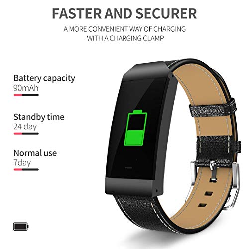 • maxtop Leather Smart Band for Men with Heart Rate Monitor/Blood Pressure/Pedometer/Sleep Monitor/Message&Call Reminder Compatible with Android and iOS Phone/Black