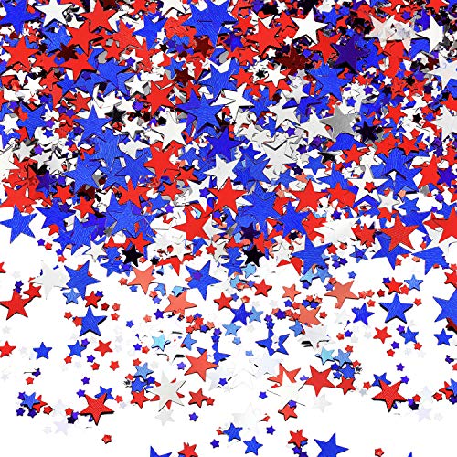 • 4.23 oz Independence Day Table Confetti Stars Confetti Patriotic Confetti for Wedding 4th of July Party Supplies in Red, Silver and Blue