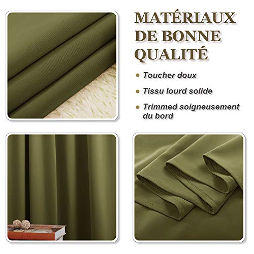 • PONY DANCE Blackout Kitchen Curtains - Window Drapes Rod Pocket & Back Tab Energy Efficient Curtain Panels Xmas Home Decor for Kids' Room, 42-inch Wide by 45 Long, Olive Green, 2 PCs