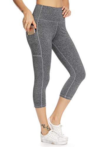 Olacia Womens High Waisted Leggings with Pockets Yoga Pants Workout Leggings Athletic Capris Tummy Control Running Pants,Heather Grey,Medium, Heather Grey-capri