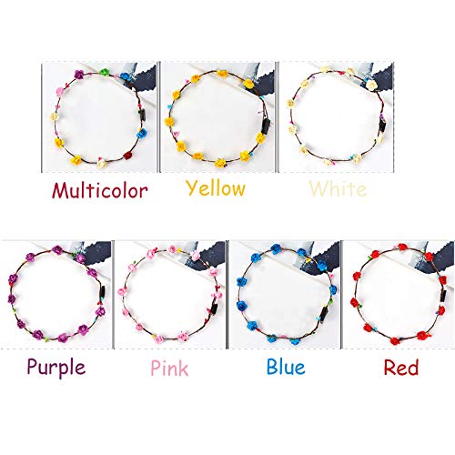 LED Flower Crown, Fascigirl 10PCS Flower Wreath Garland Flower Headdress Luminous Headpiece Light-up Hair Hoop for Wedding Bridal Night Party Decor Festival Holiday Christmas Halloween Party, Multicolor